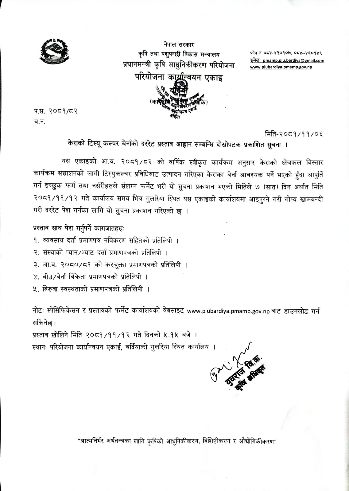 केराको विरुवाको दररेट पेश गर्ने सम्बन्धि दोस्रो पटक प्रकाशित सुचना ।